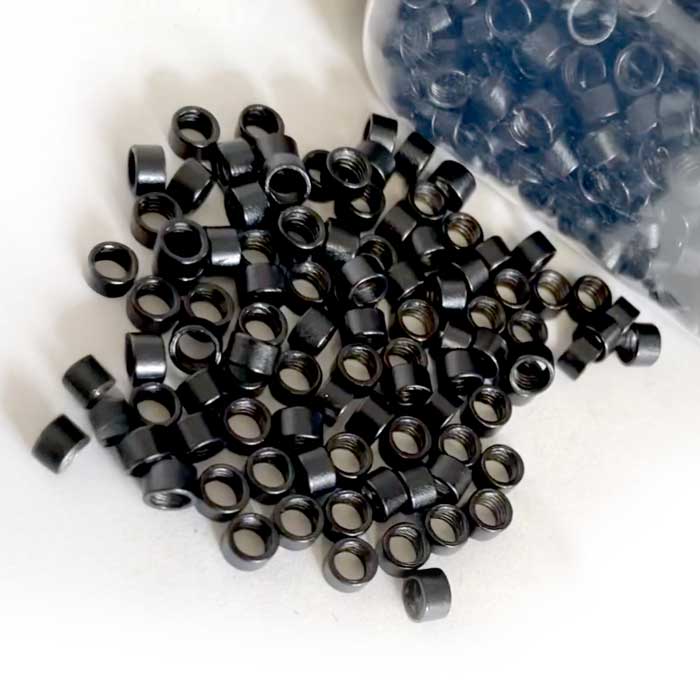 Kleine, silikonbeschichtete Ringe verbinden Eigen- und Fremdhaar sicher und diskret. Da keine Lösungsmittel zur Entfernung nötig sind, ist diese Methode besonders freundlich zu Ihrer Haarstruktur.
